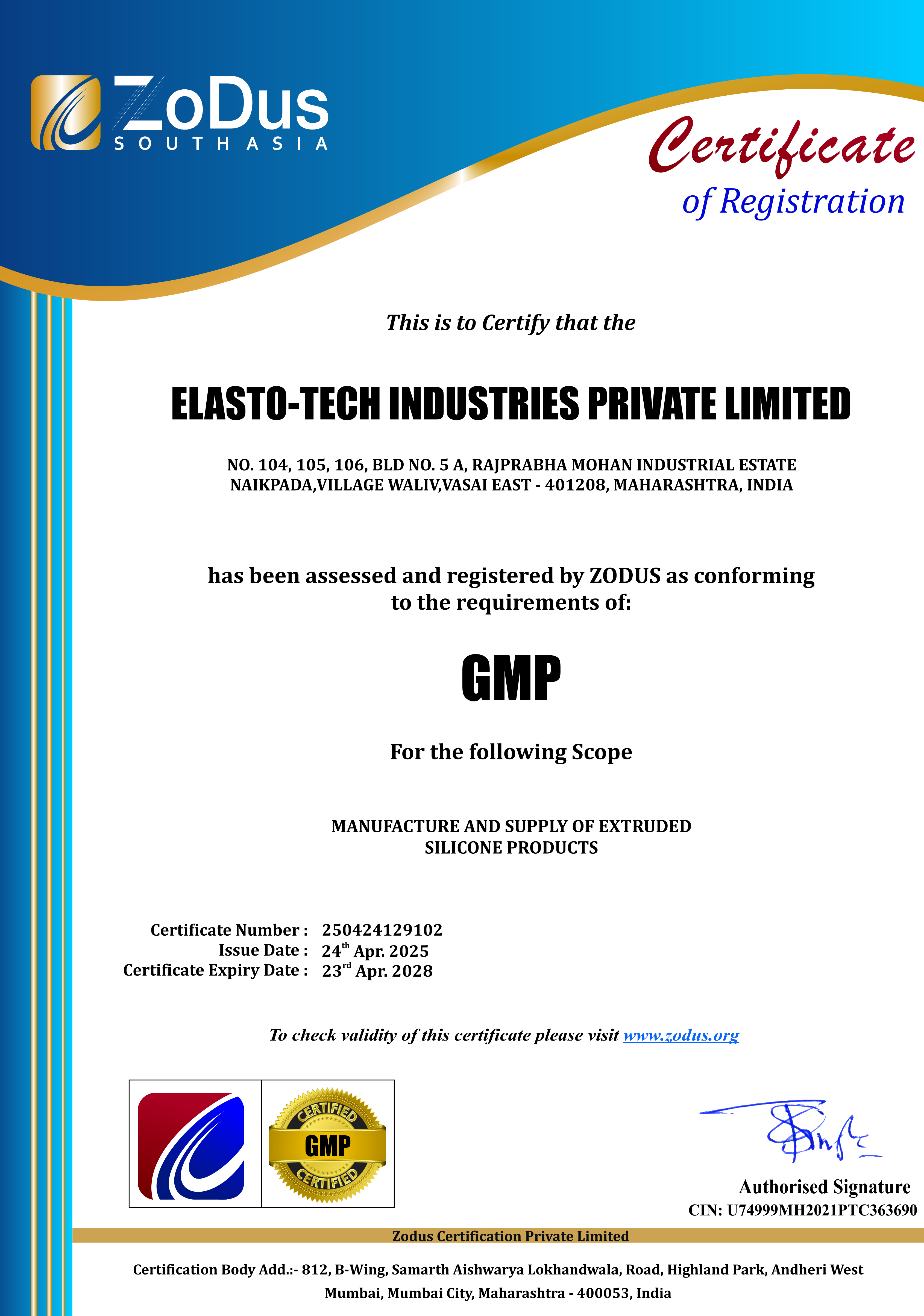 - GMP Certificate Report No. 250424129102