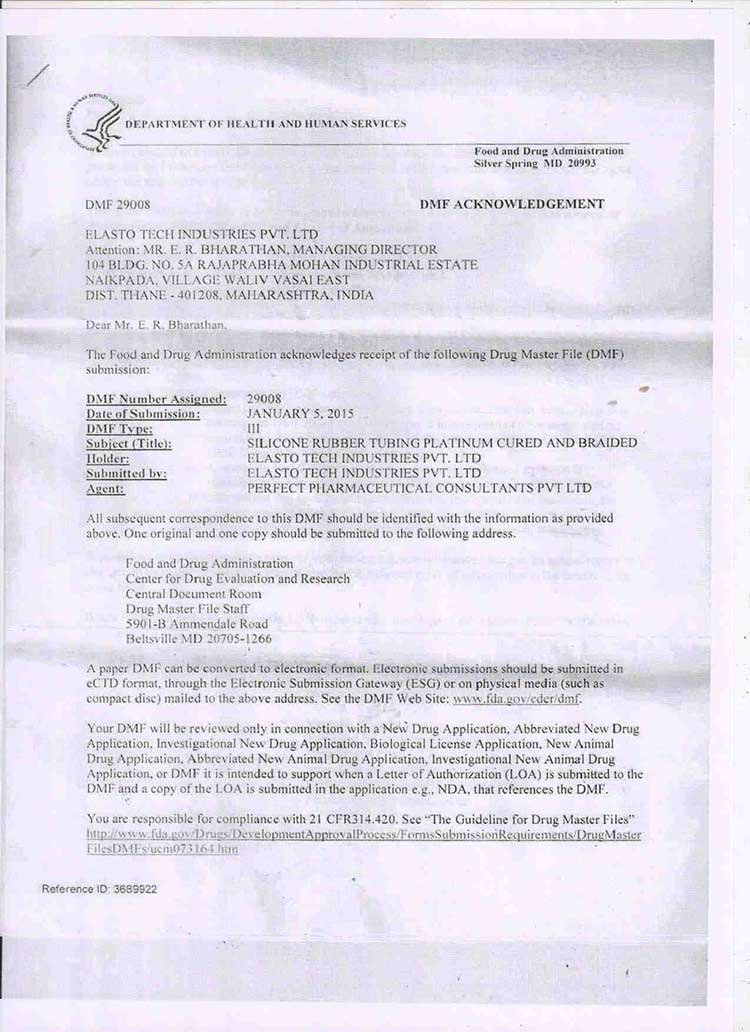 - US FDA - DMF Reg. No. 29008